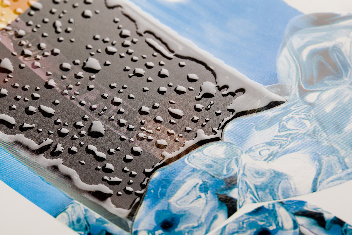 Ce procédé consiste à appliquer un vernis uniquement sur des zones spécifiques pour les mettre en valeur via des effets de contrastes. Il peut être pensé comme une 5ème couleur, ou venir soutenir la qualité d’une photo.